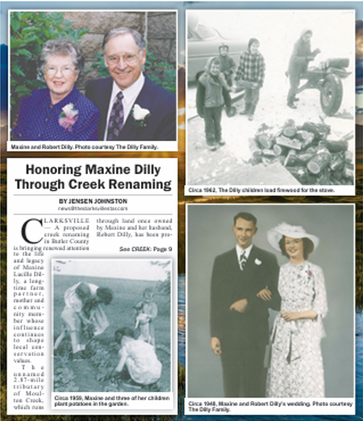The Butler County Tribune • 26th March 2026 Honoring Maxine Dilly Through Creek Renaming Maxine Dilly's stewardship of an unnamed creek will potentially live on through the efforts of her children to have the waterway named "Dilly Creek" in her honor.