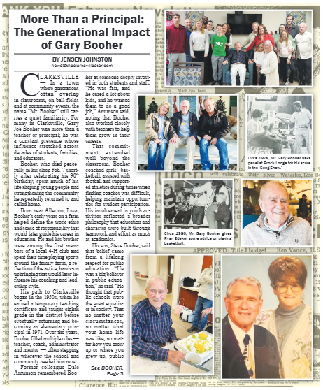 The Butler County Tribune • 19th February 2026 More Than a Principal: The Generational Impact of Gary Booher Gary Booher, a beloved principal who served the community for nearly 3 generations, passed away.